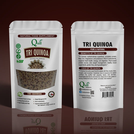 At Quill Natural Superfoods, we meticulously select premium white, red, and black quinoa grains, ensuring a clean, high-quality blend that's free from additives. Our Tri-Quinoa is made to be a cornerstone of a healthy, balanced diet.