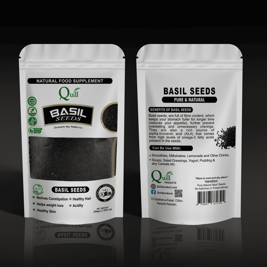 At Quill Natural Superfoods, we carefully select premium Basil Seeds, ensuring a pure, high-quality product free from additives. Our Basil Seeds are a simple yet effective way to add natural cooling, fiber, and nutrition to your daily routine.