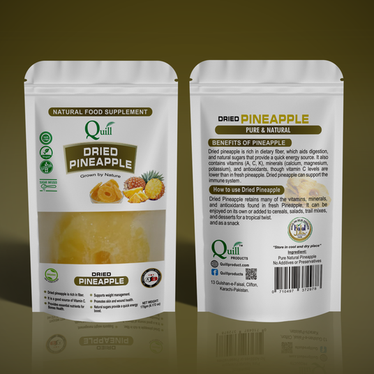 At Quill Natural Superfoods, we select high-quality pineapples and gently dry them to bring you a delicious and nutritious snack. Our Dried Pineapple is a pure, wholesome treat, packed with natural goodness and free from unnecessary additives, perfect for your healthy lifestyle.
